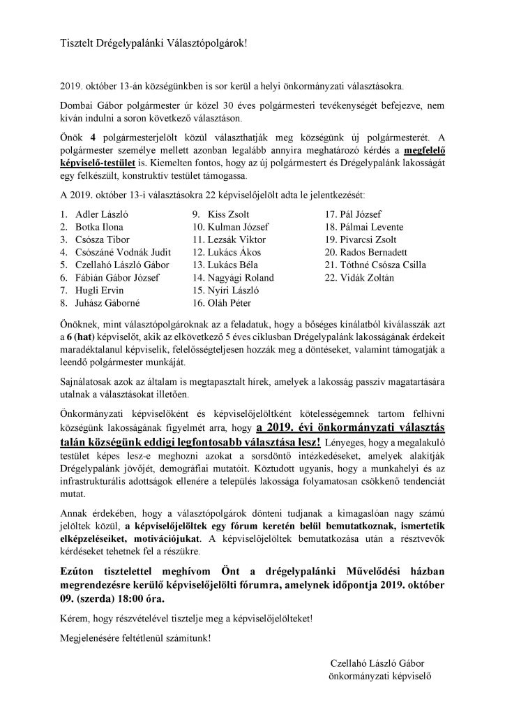 2019.10.09. - Képviselőjelölti fórum
