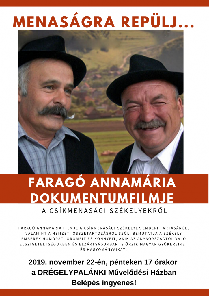 2019.11.22. – Menaságra repülj – Faragó Annamária dokumentumfilmjének vetítése
