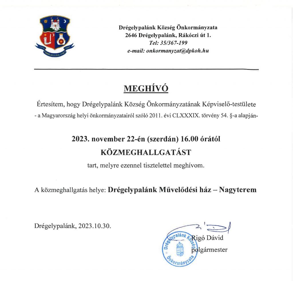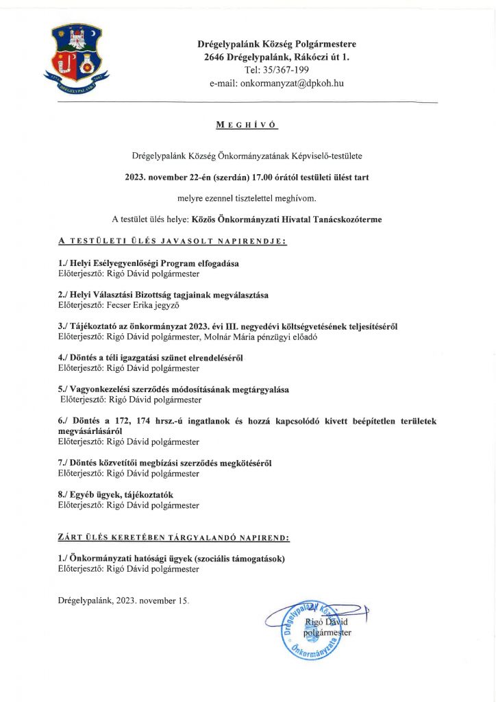 2023.11.22. – Drégelypalánk Község Önkormányzat