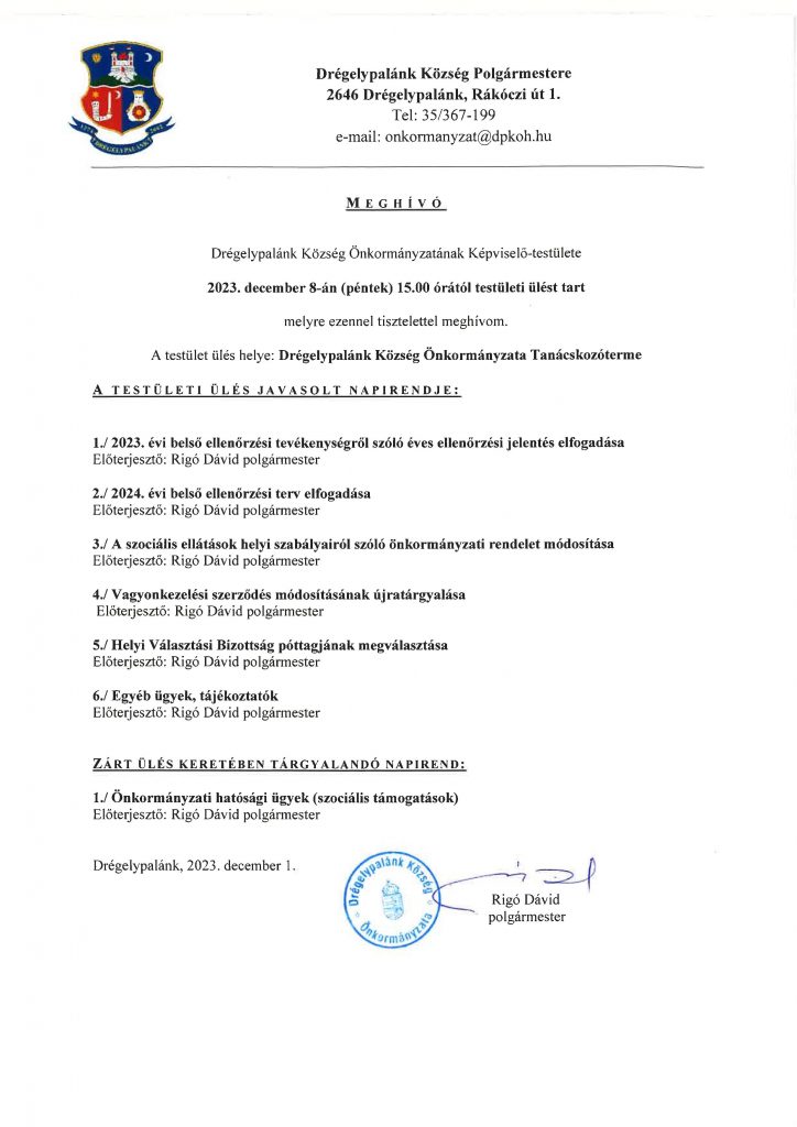 2023.12.08. – Drégelypalánk Község Önkormányzat